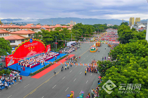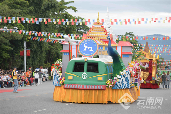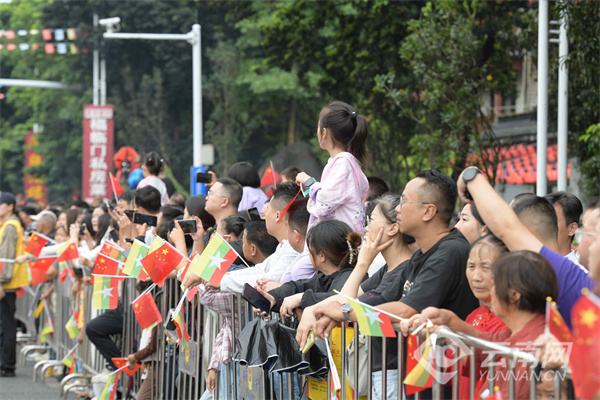 当天,巡游道路两旁人山人海,数万名中缅群众争相观看,通过巡游队伍与观众的互动,强化了中缅风情的沉浸式体验。