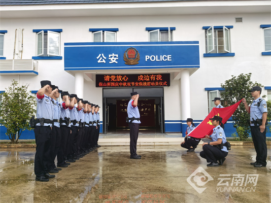 图为张凯带领派出所民警重温入党誓词,开展安保动员
