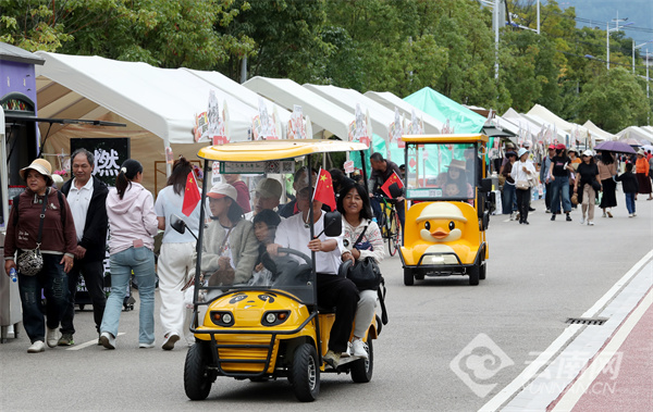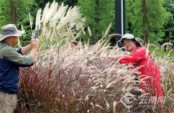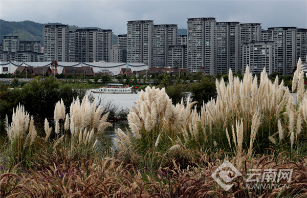 金秋时节的滇池绿道坝河湿地公园,迎来秋日里最富诗意的时刻,成片的芦苇、狗尾草和紫花苜蓿等湿地植物在滨水景观带绘就诗意秋景生态画卷,成为市民游人的打卡胜地。湿地公园举行的"秋野集"在国庆中秋假期摆开长街盛宴,市民游人品咖香尝美食;骑行绿道、漫步栈道,打卡诗意秋景,尽情享受生态休闲度假日的惬意时光。