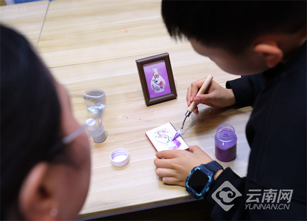 掐丝珐琅彩画体验作为假期活动的一大亮点,以云南省博物馆馆藏文物为灵感,在非遗代表性传承人的亲自指导下,参与者可亲手制作一件专属的掐丝珐琅彩画文创。此外,博物馆还安排了扎染工艺和大漆工艺等非遗体验活动,让游客在亲手制作的过程中,了解传统工艺的精湛技艺和文化内涵。