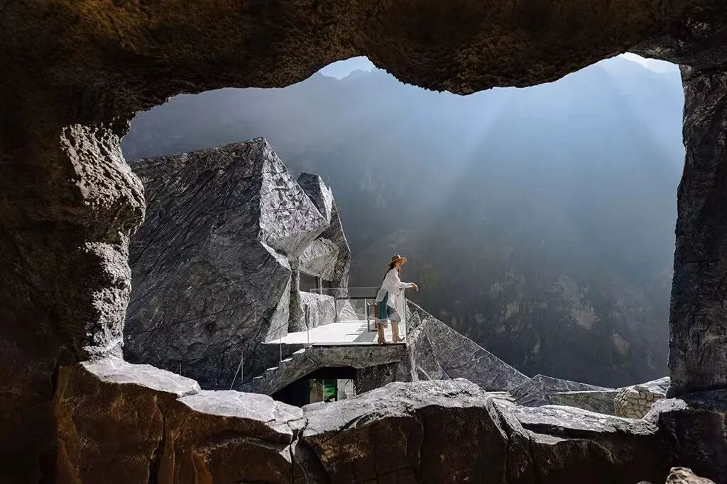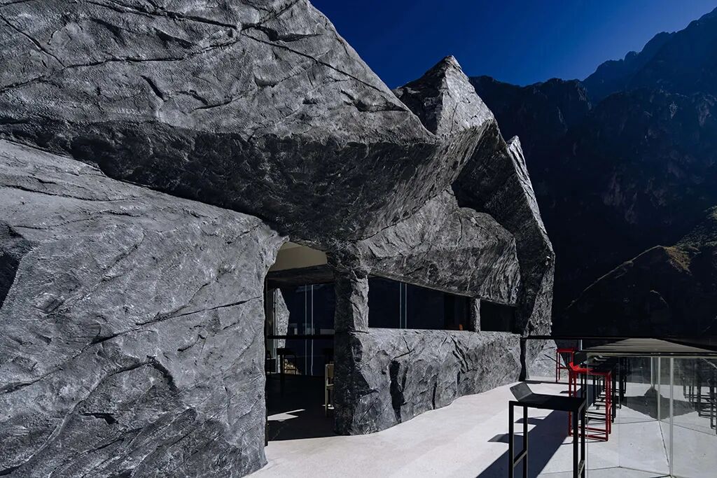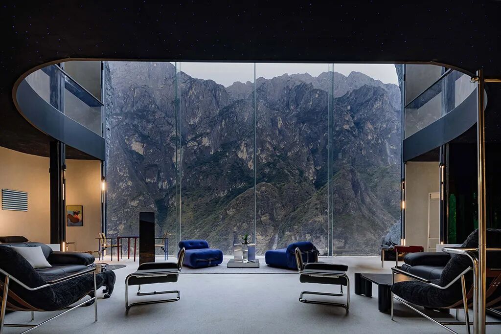 试想一下,面朝峡谷,伴着滚滚的江水,喝上一杯咖啡,是何等惬意的事。墨野·雪山悬崖酒店位于虎跳峡,在这里透过巨大的落地窗,就能享受雪山、峡谷带来的震撼——眼前是高耸入云的雪山,脚下是深邃的峡谷,金沙江水滚滚而下,震耳欲聋。