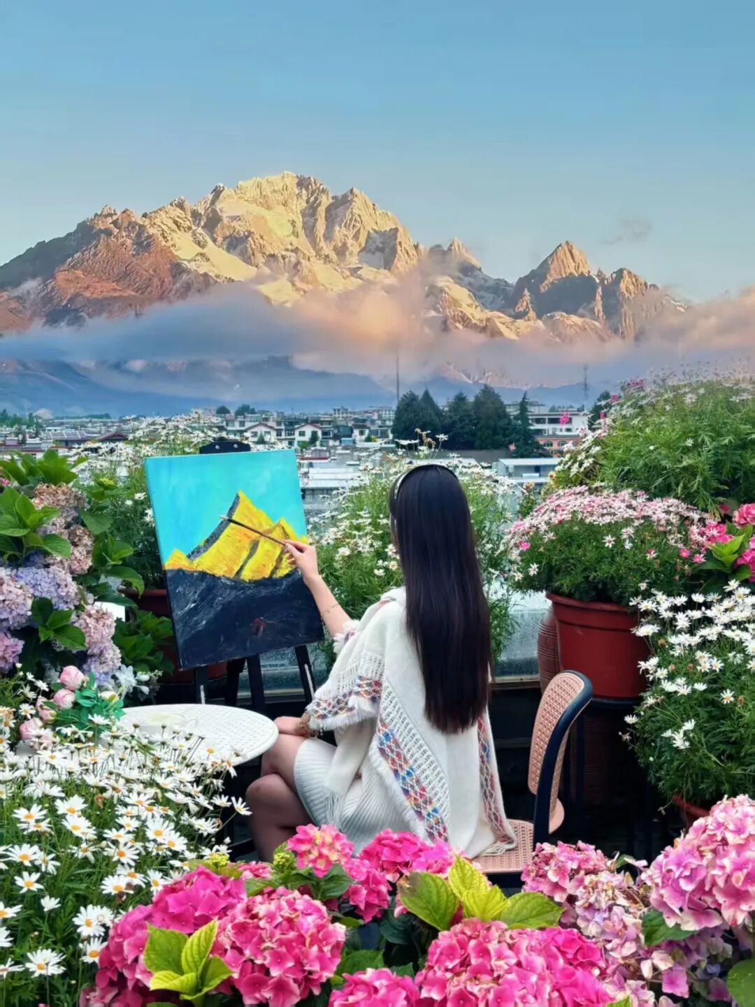 当风携着雪山的清冽吹向脸庞,喝上一杯独特的咖啡特调便更有“云南味”,在丽江屋顶雪山花海Rooftop cafe Lijiang,你可以在品尝咖啡的同时与玉龙雪山同框。