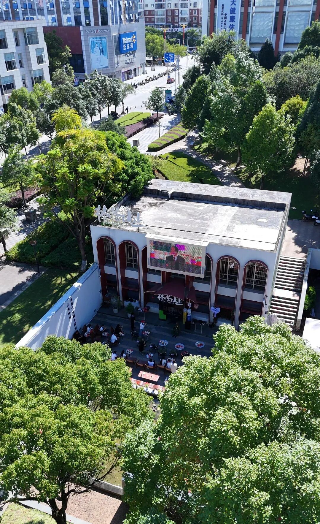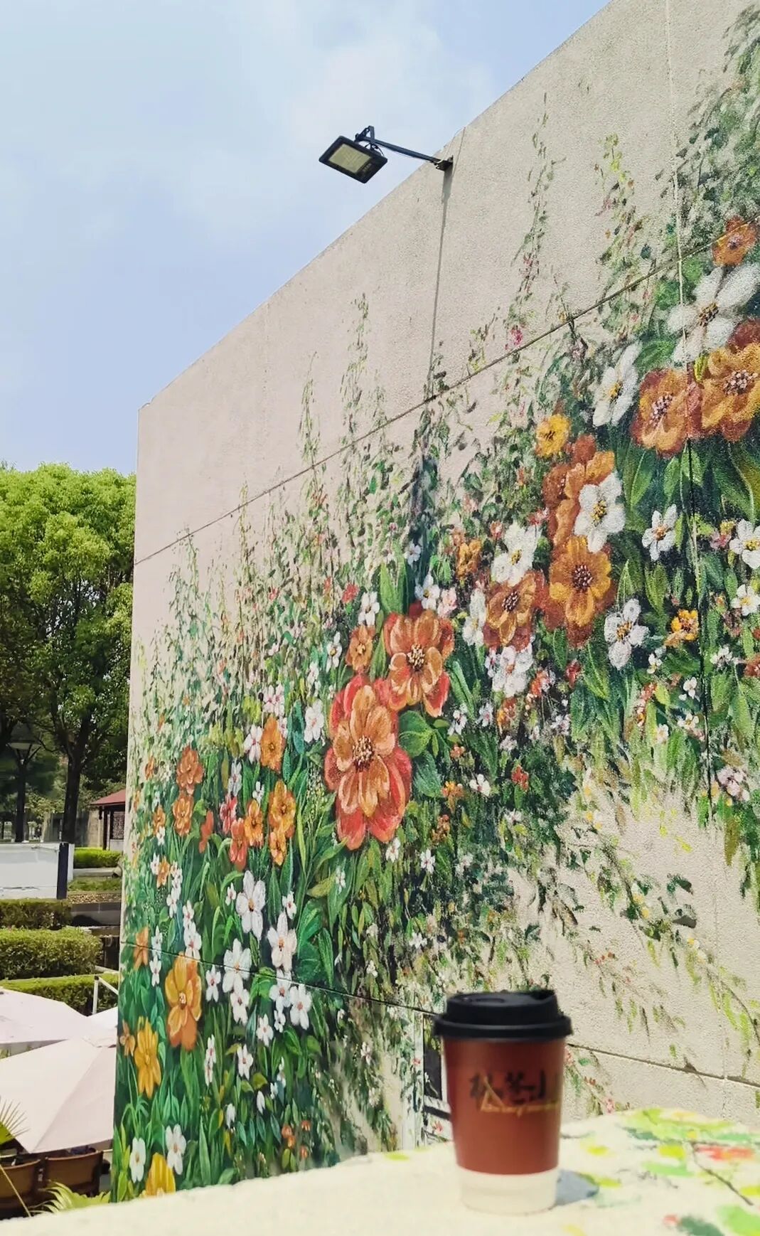 林苍山上茶咖店隐匿在临沧市沧江园绿意盎然的广场一隅,店旁有一面油画花墙,置身其中,仿佛步入一条艺术长廊。茶咖店虽身处闹市,但绿植环绕,微风轻拂,能让顾客获得一份宁静。