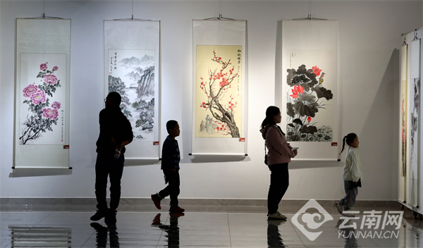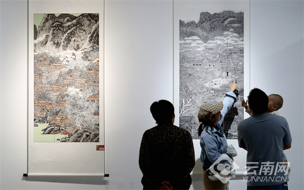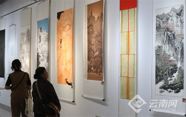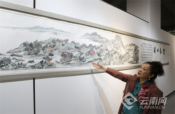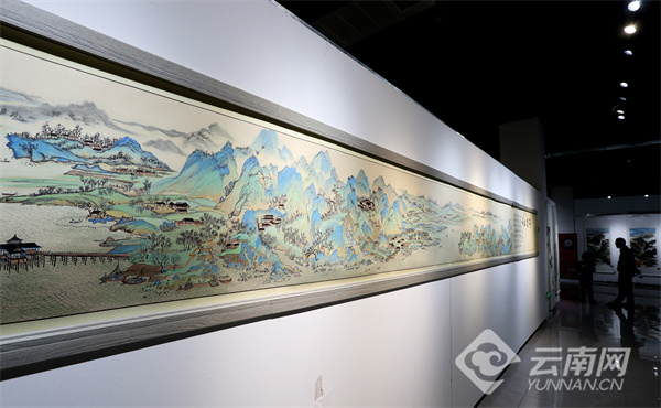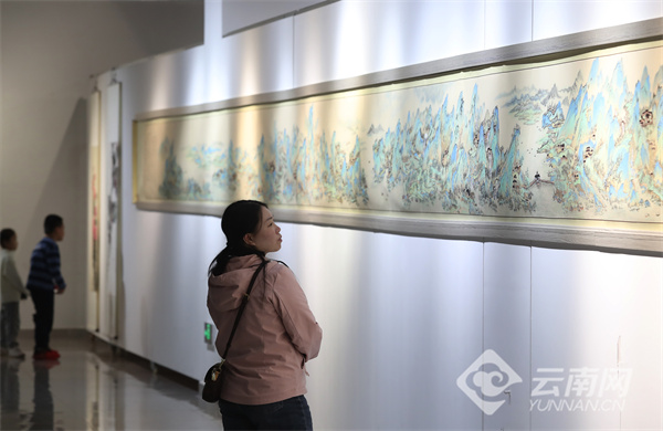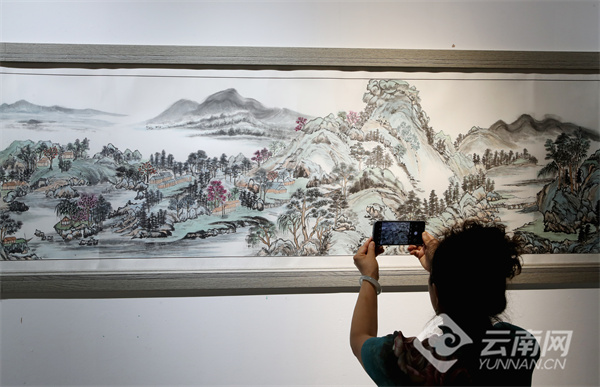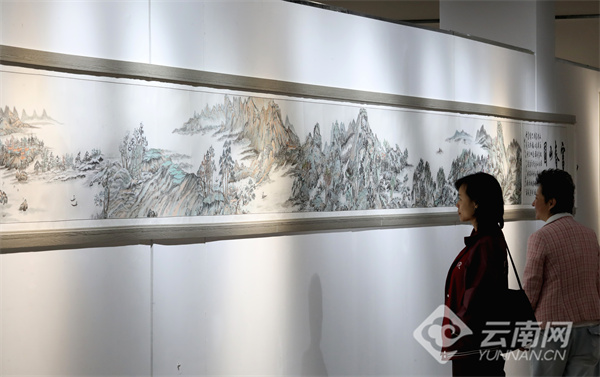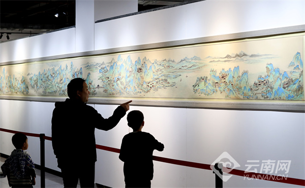 国庆中秋假期,在昆明市五华文化艺术中心举办的《礼赞国庆》书画作品展吸引市民前来观展,在一幅幅翰墨画影间饱览祖国壮美山河,感受艺术家用笔墨丹青抒发的家国情怀,其中19米《千里江山》和13米《富春山图》临作长卷备受关注。