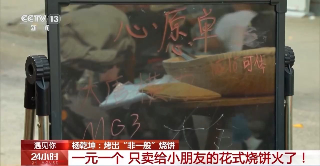 在烧饼摊一旁,杨乾坤还留了块小黑板,专门供小朋友们手写他们想要的烧饼造型。满足小顾客们的心愿,也是杨乾坤每天最上心的事儿。