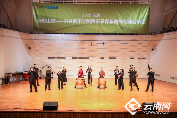10月22日晚,2025·云南第三届中国民族音乐传承周重要演出之一——“云影山歌”青年教师专场在云南省大剧院上演。中央音乐学院多位青年教师携手登台,以饱含情感的演奏与跨民族的艺术对话,鼓乐、弦音与山歌相融,为观众呈现了一场为现场观众奉上了一场扎根传统、兼具当代审美的民族音乐盛宴。