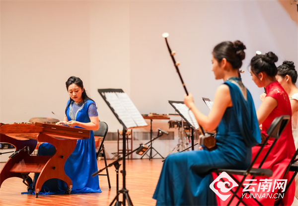 演出中,多首融入创新元素的作品成为亮点。中央音乐学院胡琴教授胡瑜的新作《踏云谣》,以滇南民歌为基础,将海菜腔、坡芽歌书与《小河淌水》的音乐元素相融合,采用现代室内乐的表现形式重塑民族旋律。“我的创作灵感源于云南深厚的民歌文化,但以北方乐器板胡为主要独奏乐器。”胡瑜在介绍作品时表示,希望通过其独特音色展现云南的自然与人文风情,在南北音乐文化交融中迸发新的艺术火花。