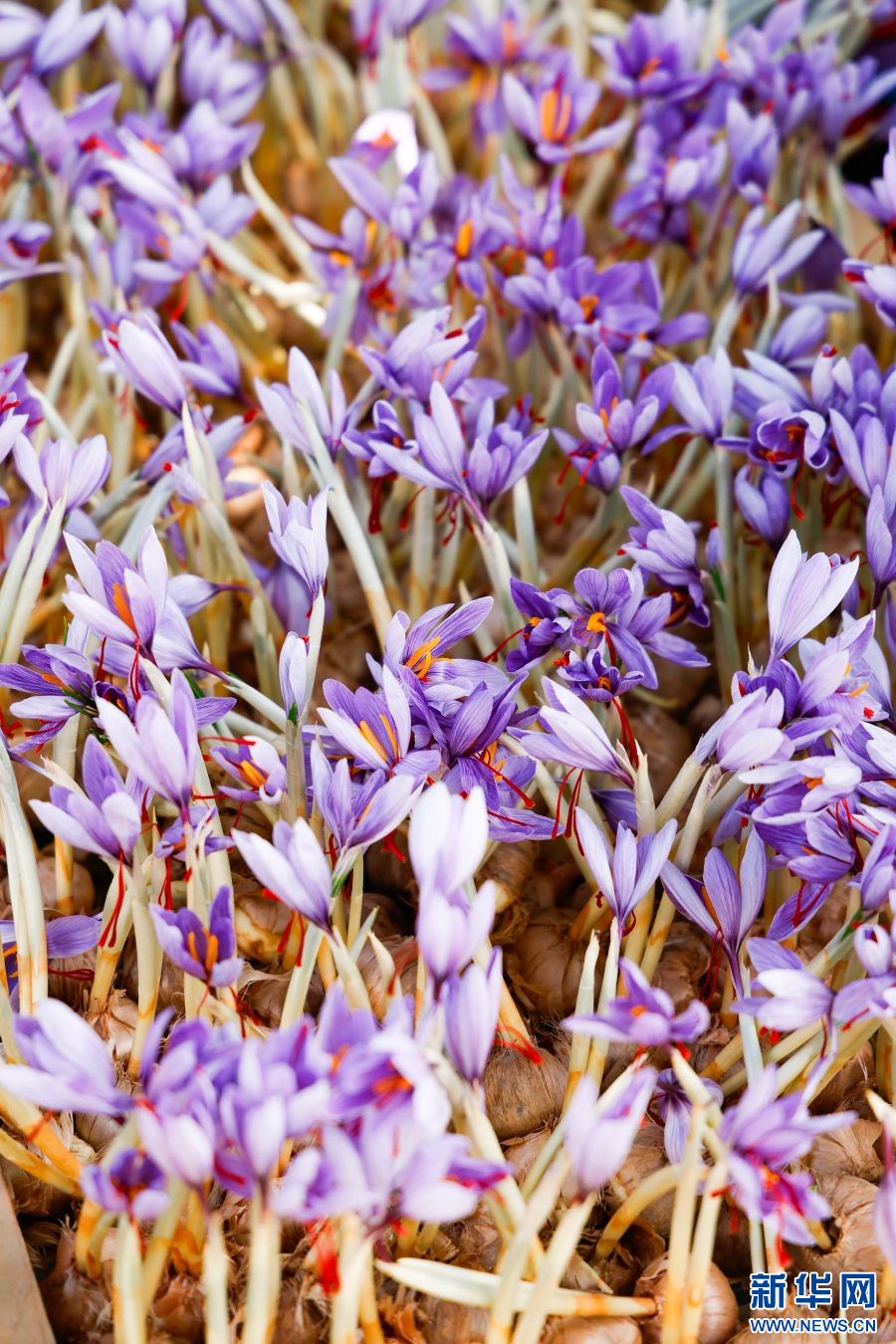 新鲜采摘的藏红花(10月23日摄)。新华网发(刘云 摄)