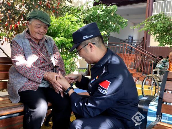 清晨的福利院还浸在怒江峡谷的薄雾里,民警们就扛着牛奶、提着新鲜水果进了门。没等放下物资,大家就忙开了:针对行动不便的老人,民警细心协助他们穿戴衣物,推着轮椅陪他们到花园散步;与老人们围坐交谈时,有的耐心倾听老人追忆往昔岁月,有的关切询问身体状况与生活需求,细致了解他们的饮食起居、健康情况和实际困难;更有民警拿起工具,细心为老人修剪指甲与须发,用无微不至的照料让老人们感受到家人般的温暖。