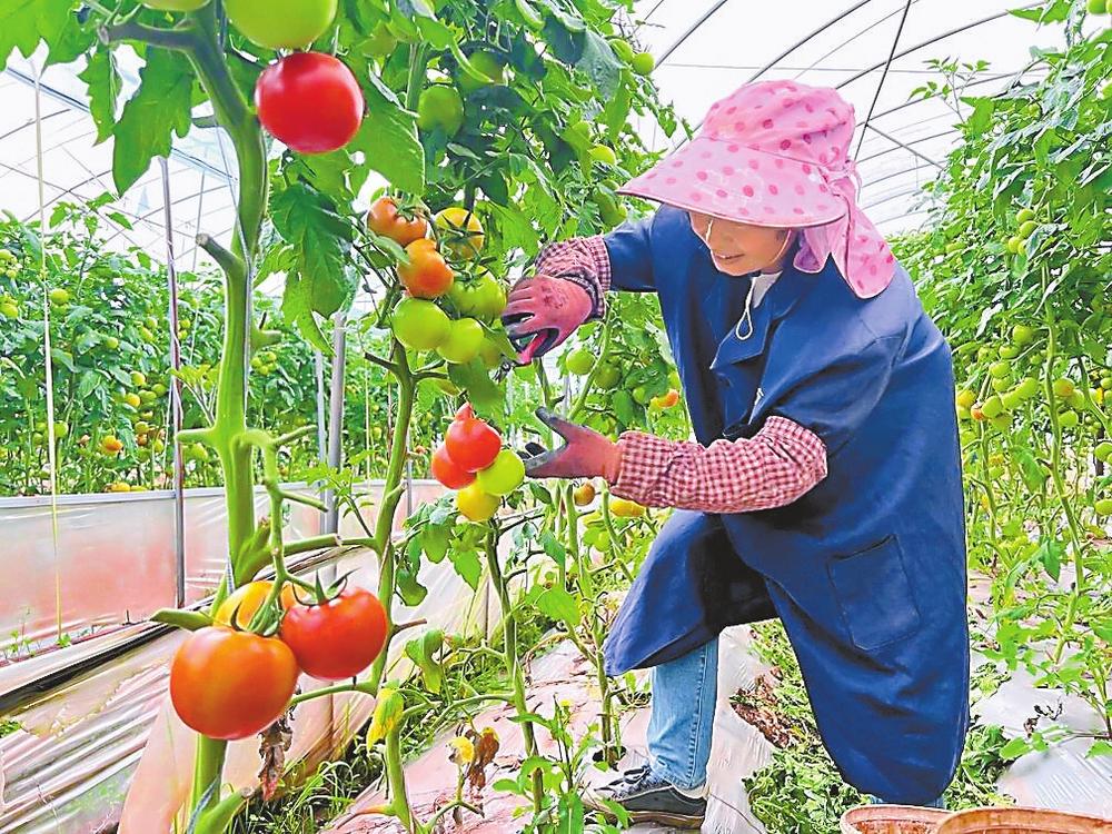 工人在基地采摘番茄 通讯员 胡莹 摄