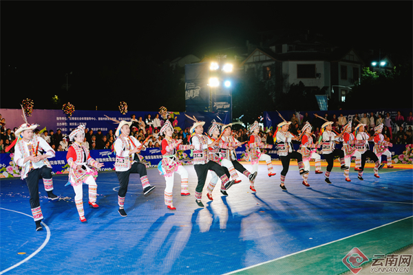 开幕式前,身穿彝族服饰的表演者带领现场观众跳起了左脚舞。开幕式上,充满童真与活力的小篮球展演展现了姚安年轻一代的朝气,而非遗舞蹈《笙舞飞扬》则带着悠扬的芦笙声登场,一甩袖便抖落千年风尘,把姚安“文献名邦”的深厚底蕴诠释得淋漓尽致。
