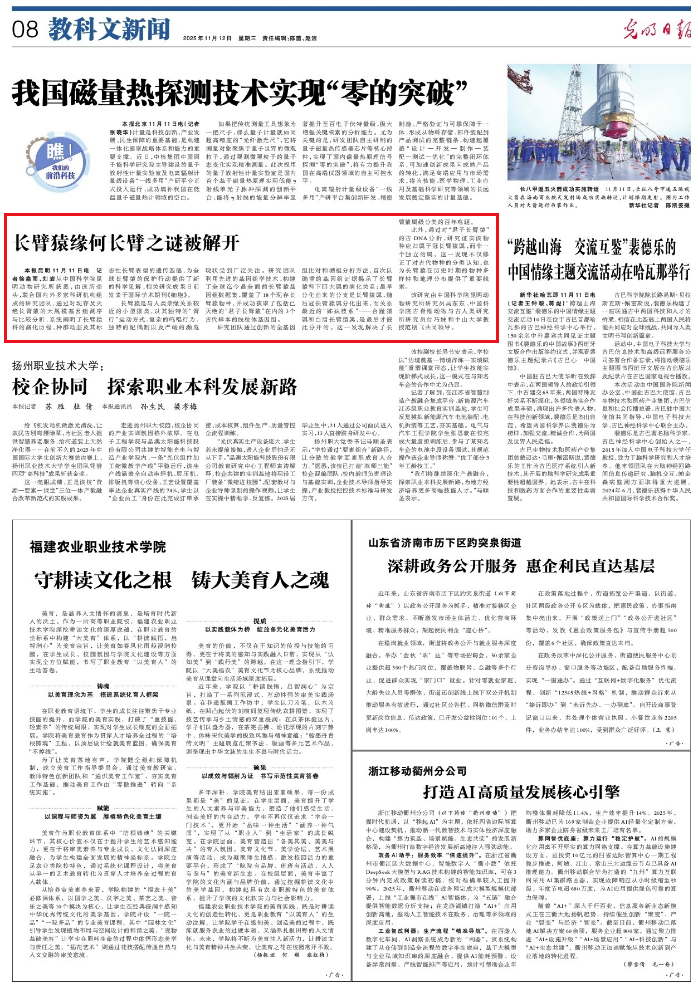 从中国科学院昆明动物研究所获悉,由该所牵头,联合国内外多家科研机构组成的研究团队,通过对现存及灭绝长臂猿的大规模基因组测序与比较分析,系统阐明了长臂猿科的演化历程、种群动态及其标志性长臂表型的遗传基础,为全球长臂猿的保护行动提供了新的科学见解,相关研究成果日前发表于国际学术期刊《细胞》。