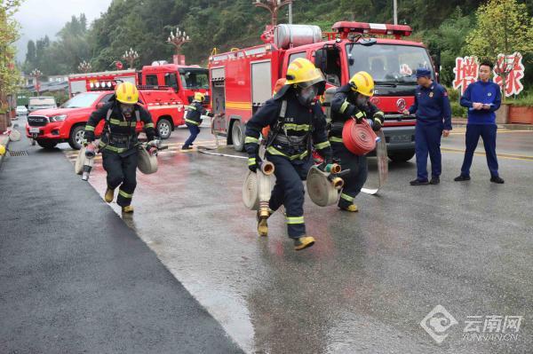 云南网讯(记者 赵岗 通讯员 魏锐)“各就位,预备,开始!”随着裁判员一声令下,水带在空中划出精准弧线,接口碰撞声与急促的脚步声交织成激昂的赛场旋律。近日,一场紧张激烈的政府专职消防队伍业务技能比武竞赛在云南省昭通市威信县消防救援大队举行,来自全县9个乡镇的45名专职消防队员齐聚赛场,以精湛的技能和顽强的斗志,展现出了乡镇消防力量的风采。