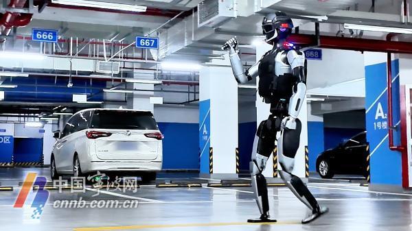 原标题:甬产人形机器人新产品亮相 1.8米“安保员”来了