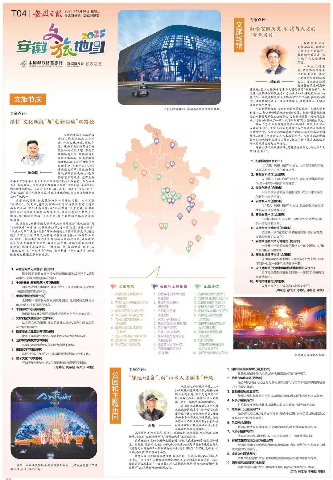 推动“宣文艺旅”融合发展,助力“徽风皖韵”破壁出圈。“安徽文旅地图”是安徽日报大文旅全媒体中心聚合社会各界文化服务资源、讲好“宝藏安徽”生动故事的创新实践。坚持“开门办报”的优良传统,安徽日报客户端开设网络专题,在推出“安徽文旅地图”2025版之后,无缝衔接启动2026版编制工作,广邀网友推荐打卡自己喜爱的好景好吃好玩好物,在动态更新、不断充实“地图”的同时,将“安徽文旅地图”打造成“安徽文旅门户”。