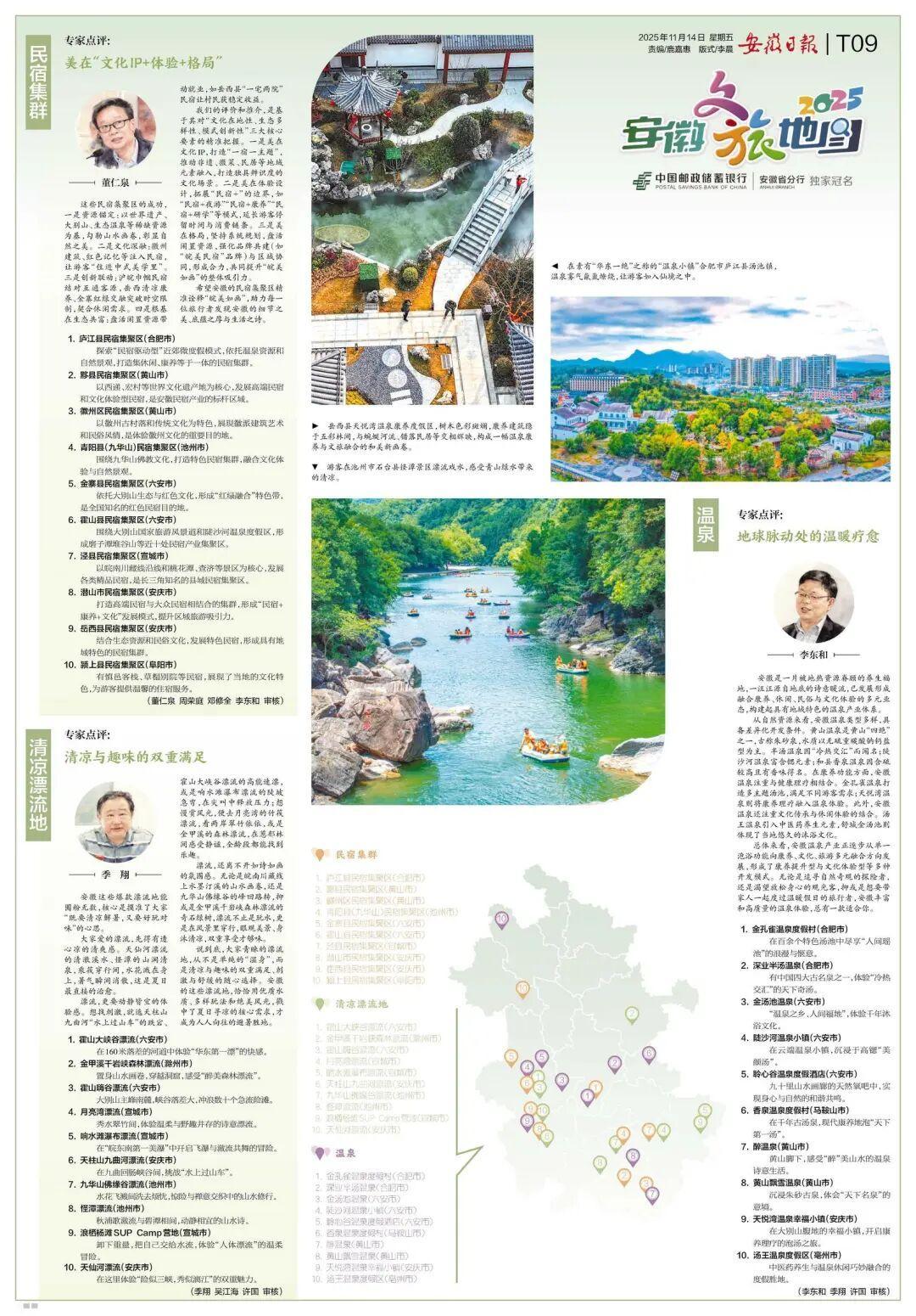 在第十五届安徽国际文化旅游节即将开幕之际,11月14日,安徽日报大文旅全媒体中心在安徽文旅领域各专业协会协作配合下,邀请相关领域专家学者、专业人士组成推介团,共同绘制深度体验“皖美如画”的“安徽文旅地图”,围绕全域、聚焦垂类,集中梳理日新月异的安徽文旅业态、场景、项目,展现安徽“文旅+百业”协同发展、相互赋能的创新生态。