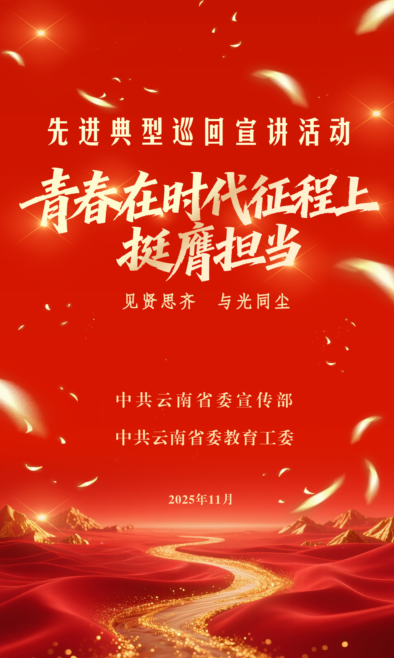 为充分发挥先进典型的示范引领作用,用榜样的力量激励广大青年学生坚定理想信念、锤炼高尚品格、矢志拼搏奋斗。由中共云南省委宣传部、中共云南省委教育工委联合主办的“2025年云南省先进典型巡回宣讲活动”,即将拉开帷幕!