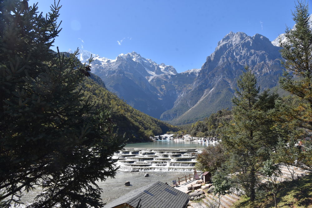 继续向雪山深处前行,在蓝月谷的冬日景象中,再一次被雪山壮阔之美震撼。如果说黑龙潭的雪山倒影是水墨留白,那矗立在蓝月谷的雪山便是浓墨重彩的油画。冬日的蓝月谷,宛如遗落人间的蓝宝石,梦幻蓝从浅蓝到深蓝层层递进,铺展在雪山脚下。银白与湛蓝色形成强烈视觉冲击,美得直击人心。