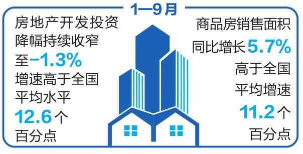 今年以来,在政策措施加持和各地各部门协同发力下,我省房地产市场不断回稳向好,1—9月,全省房地产开发投资降幅持续收窄至-1.3%,增速高于全国平均水平12.6个百分点,增速居全国第五位。其中,住宅开发投资同比增长3.2%,已连续8个月同比增长。同时,全省商品房销售面积同比增长5.7%,连续6个月保持正增长,高于全国平均增速11.2个百分点,全省二手房成交面积也同比增长13.5%;房价保持稳定,全省商品房均价6590元/平方米,浮动幅度稳控在合理区间;库存加快去化,截至9月底,全省商品住宅库存去化周期缩短至17.4个月。