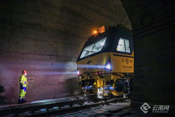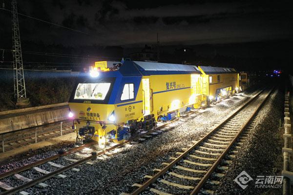 云南网讯(记者 夏方海 通讯员 吴杰 陶卫方 孟笑宇)11月19日凌晨,在云南丽香铁路拉市海站附近,一台黄蓝相间的国产新型连续式捣固稳定车,正沿着28.5‰的长大坡道稳步前行,精准完成连续式与步进式作业试验。