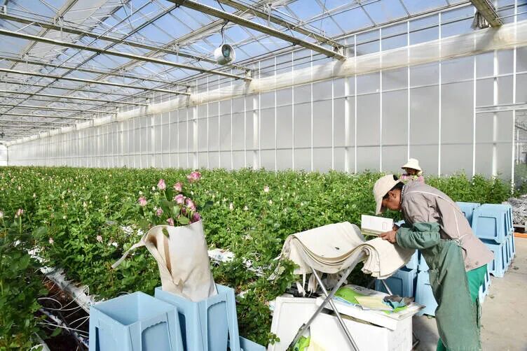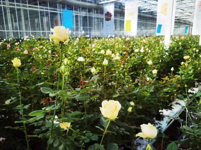 “我们依托省、市、区三级联动的花卉产业科技特派团,从品种创新到人才培育,持续为园区注入创新动能。”丽江现代花卉产业园副经理和劲生边说边指向身旁一片浅色系切花玫瑰,“这个新品种叫‘淡妆’,是我们今年与云南省农科院花卉研究所合作开展引、育、繁、推的成果之一。目前已完成22700株的种植,并已成功推向市场。”