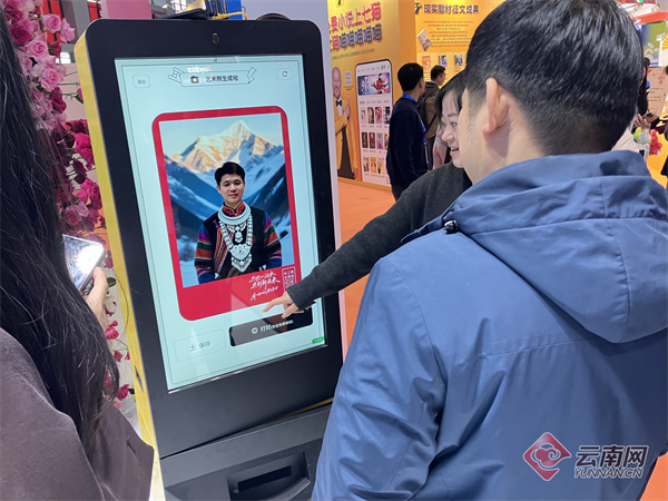 AIGC次元换装则主打一个最炫民族风,云南各民族的美丽妆容信手拈来,扫码就能将照片带走。
