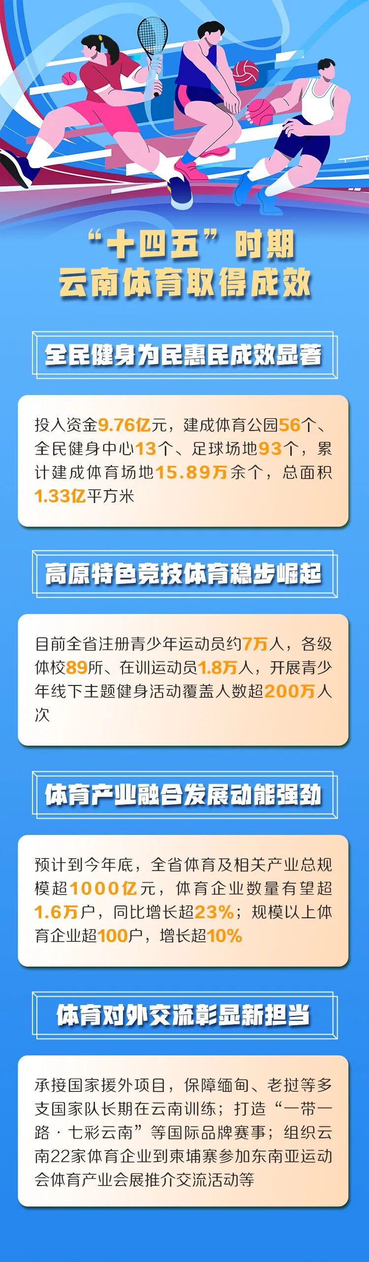 云南将持续聚焦体育为民惠民,办好人民满意的体育,构建更高水平全民健身公共服务体系,改革完善高原特色竞技体育管理体制和运行机制,聚焦户外运动和赛事经济,发展壮大体育产业,为高原特色体育强省建设、全省经济转型、推动“资源经济”发展增添新动能,解锁有一种叫体育的生活方式。