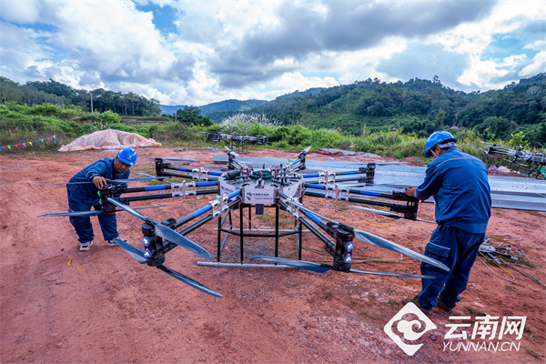 工程启动之初,就面临着严峻的挑战:如何最大程度减少对热带雨林的破坏、减少对亚洲象的惊扰?若沿用传统修路、架索道的方式,将砍伐大量林木,破坏象群迁徙通道。面对这一情况,项目团队毅然调整方案,放弃了获批的林地砍伐计划,将此前涉及热带雨林的线路路径调整优化,采用“直升机+无人机”联合运输方式运送物资。