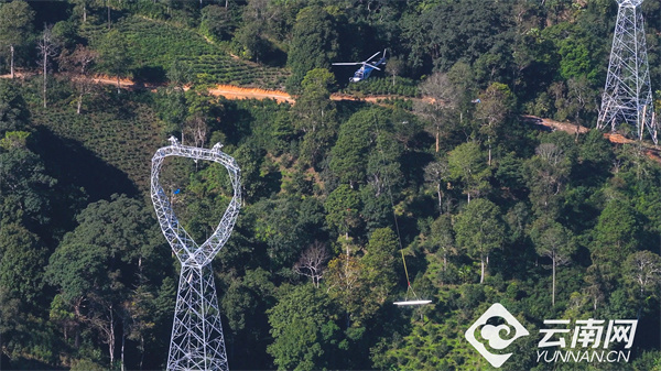 在中老500千伏电力联网工程(国内段)施工现场,重载无人机吊着电力物资在西双版纳热带雨林上空穿梭;塔基不远的地方,亚洲象群悠然觅食闲逛。为了保护好这片雨林和国内最大的亚洲象栖息地,南方电网公司通过修改施工方案,以“直升机+无人机”联合运输方式,在“象”往之路架设起一条绿色脉动,推进人与自然和谐共生。