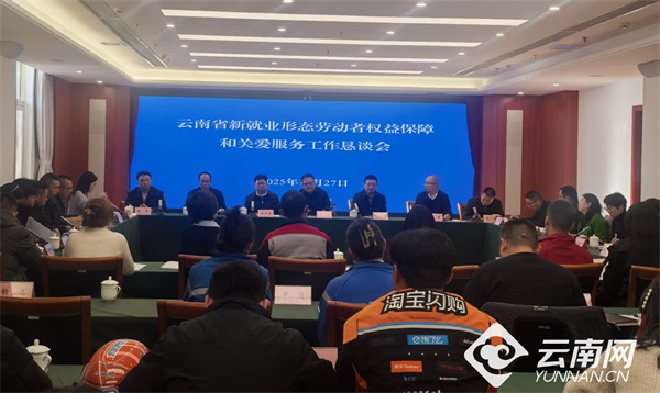 11月27日下午,云南省新就业形态劳动者权益保障和关爱服务工作恳谈会在昆明召开。省总工会联合省委社会工作部、省人力资源社会保障厅、省交通运输厅、省民政厅、省市场监管局、省邮政管理局等相关部门,与美团、顺丰、京东等头部平台企业云南分支机构及滇约出行、云聚物流等本地重点平台企业、一线劳动者代表齐聚一堂,以面对面恳谈方式倾听诉求、征集意见、促进工作。