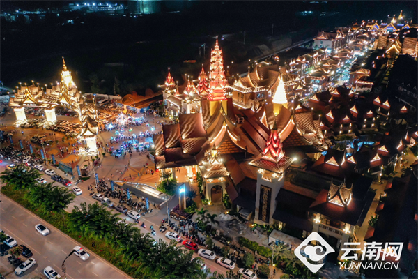 孔雀湖国家级旅游度假区傣族古镇夜景 图源:“芒市文旅”微信公众号