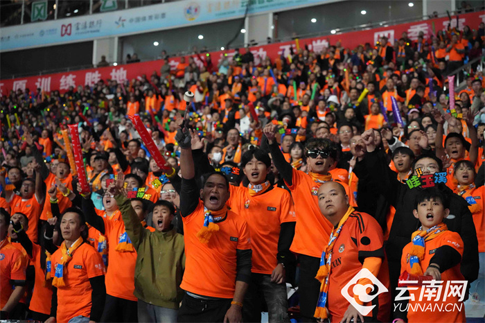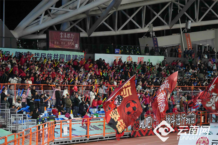 傍晚时分,玉溪高原体育运动中心主体育场早已灯火通明,人声鼎沸。来自云南各地的球迷们身着各自支持球队的队服,早早地来到现场。他们脸上洋溢着兴奋与期待,迫不及待想要见证这场云南足球的顶级盛宴。