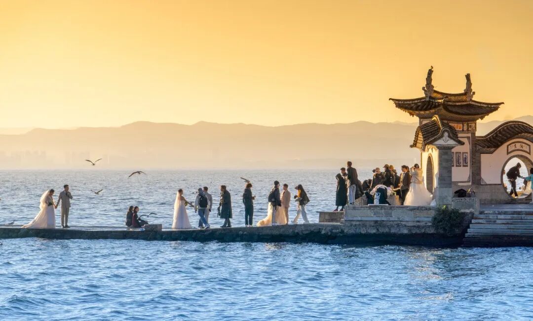 “海誓山盟的寓意特别好,我们专门挑了这个地方拍婚纱照。”在大理洱海生态廊道,来自江西的一对新人道出了许多人的心声。据了解,今年旺季时大理每天接待近600对婚旅新人。