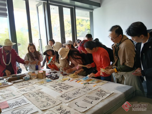和丽峰粗略统计,今年以来已有10余个台湾参访团来到研究院。“我们会举办一些体验性活动,比如用东巴文字书写‘两岸一家亲’以及纳西族一些口耳相传的民谚,让来参访的台胞对东巴文化有沉浸式了解、对其中包含的多民族文化共融有切身体会。”和丽峰站在书写体验室里介绍。体验室正对着的月亮门上,挂有“云南省对台交流基地”的牌子。