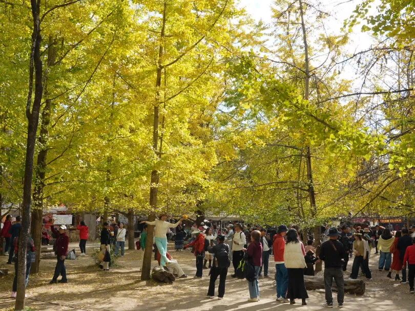 每年的11月下旬,江东村的银杏进入最佳观赏期。4万余棵古银杏树将整个村庄染成一片纯粹而耀眼的金色,满村尽戴黄金甲。轻风拂过,金叶如蝶般飞舞落在房檐上、路面上……村里的银杏广场、农家小院、青石板小巷,到处挤满了拍照打卡、品尝银杏美食的游客,人们尽情陶醉在这大自然的美景中。“我们从山西太原专门到腾冲看银杏树,挺漂亮、挺美!气候又温暖,比我们那里暖和,挺好的!”来自山西的游客任女士对腾冲、对银杏村美景赞不绝口。