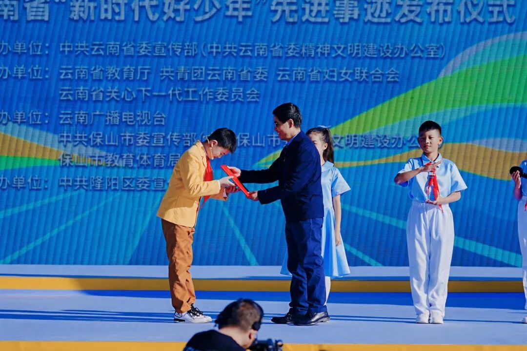 毛建忠为新时代好少年代表颁发荣誉。图源:云南广播电视台