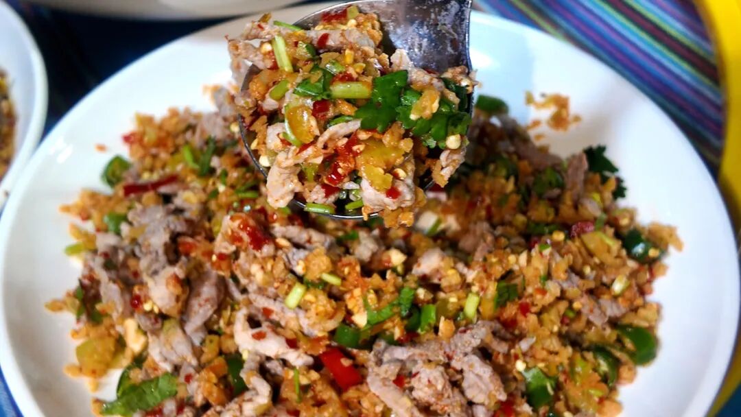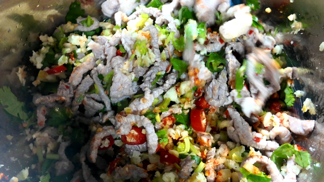 选用新鲜的青橄榄,去核舂碎后释放出天然酸涩与回甘,成为整道菜的灵魂。接下来,把过凉后的肉丝放入碗中,大蒜与小米辣剁成细末,青红椒切圈增色添脆,盐、鸡精、味精、生抽调和出层次分明的底味。依次加入所有的调料用筷子充分搅拌均匀,让每一根肉丝都均匀地裹满调料,在搅拌的过程中,各种食材的味道开始相互交融,一场味觉的奇妙之旅即将开启。