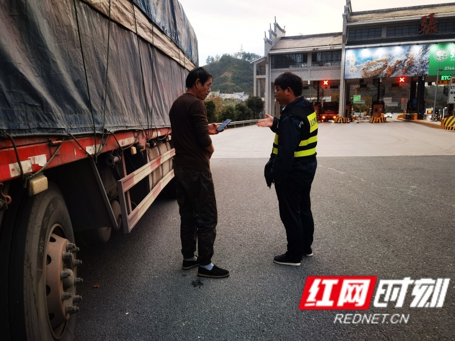 11月30日,一辆皖牌4轴货车从张家界西收费站入口车道驶入高速后停止在路中间不动,在车流中十分危险,收费班长发现这一情况后立即上前查看,通过询问得知货车刚上高速就突发故障,司机正尝试自行修理。
