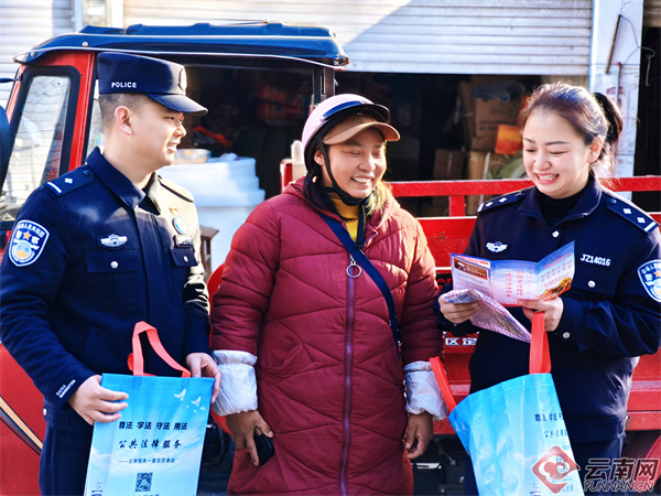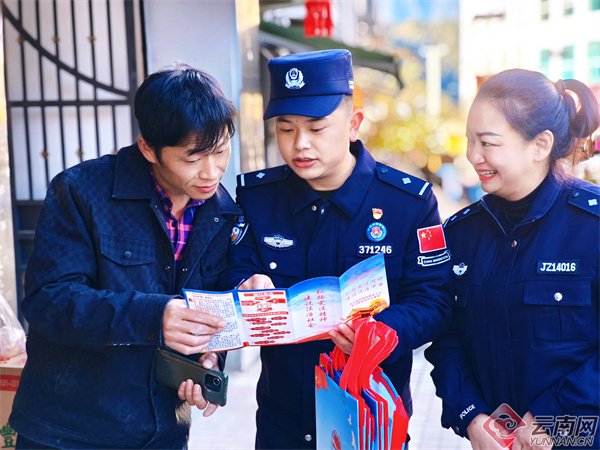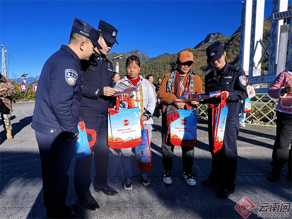 在片马镇驼峰航线纪念馆、菜市场等人员密集场所,派出所联合司法所民警拉起宣传横幅、摆起“普法小摊”,搭建起流动普法阵地。民警与来往群众面对面交流,解读《中华人民共和国宪法》核心要义,结合党的二十届四中全会精神,通过“理论+案例”“答疑+互动”的方式,把党的政策红利、法律保障精准传递到各族群众心中。“作为一名移民管理警察,扎根群众、服务群众是本分,我们既要让宪法精神入脑入心,更要带动群众共同守边护边,筑牢边境安全屏障。”民警梁国的话语道出了一线民警的责任担当。
