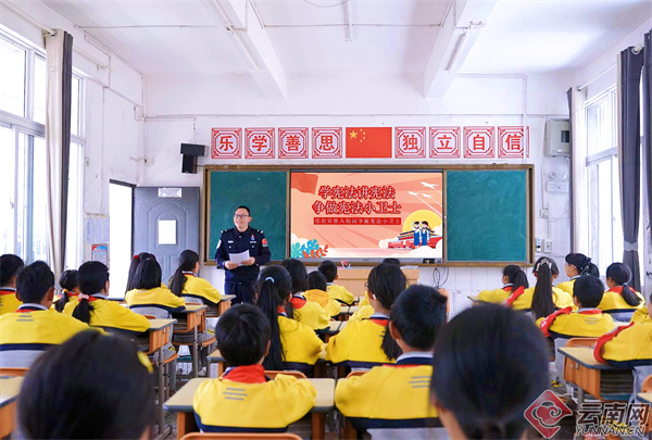 在片马镇中心完小,一场别开生面的法治课精彩开讲。“国家宪法日是哪一天?”“2025年是第几个宪法宣传日?”互动问答环节点燃了同学们的参与热情。民警通过自制PPT、绘画展板等可视化载体,围绕“宪法是什么”“宪法日的由来”“宪法与青少年的关系”等主题,用生动案例阐释宪法的地位作用与基本原则。结合怒江辖区未成年人权益保护现状,民警重点剖析校园欺凌、电信网络诈骗等典型案例,教导同学们增强自我保护意识与法治观念。活动现场还设置有奖答题环节,发放宪法宣传册、法治口袋书、定制宣传袋等小礼品,让同学们在轻松氛围中深化对宪法的理解,纷纷立志争做“宪法小卫士”。