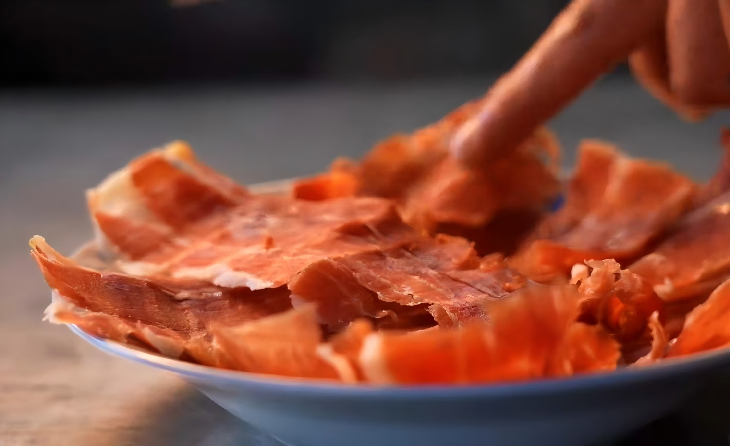 靠着自然的风干与烟熏而成的老窝火腿具有清香、柔软、低盐的特点。制成的老窝火腿切开后,肉质细腻柔软,肉色呈自然桃红,油分饱满却不腻口,即便长时间自然存放,风味也不会消散,是真正的天然美味。细细咀嚼,浓郁的肉香中夹杂着淡淡的烟熏味,质地柔软细嫩,品质上乘的火腿生吃时,还能尝到类似奶酪的醇厚香气,余味悠长。
