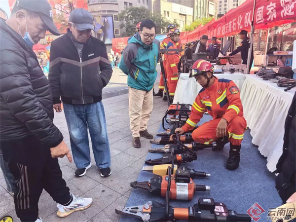 云南网讯(记者 贺凯)12月4日,国家隧道应急救援中铁二局昆明队携带“硬核”装备,携带丰富实用的应急知识,走进人群,在昆明市五华区南屏街昆百大广场前举办了一场别开生面的“12·4”国家宪法日应急科普宣教活动。