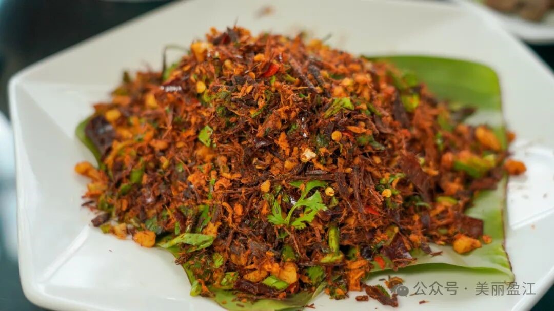 坚果舂干巴 图源:“美丽盈江”微信公众号