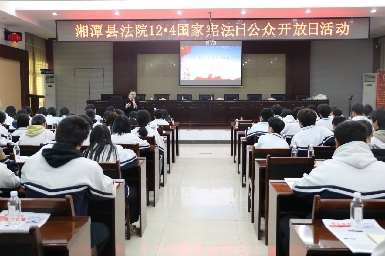 今年12月4日是第十二个“国家宪法日”。日前,湘潭县人民法院紧扣“大力弘扬宪法精神,建设社会主义法治文化”主题,精心组织了两场形式生动、针对性强的普法活动,让宪法精神在基层群众和青少年心中落地生根。