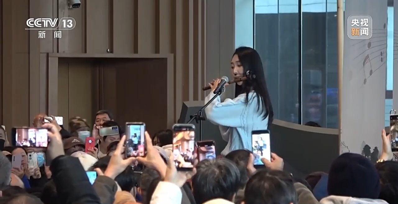 中国歌剧舞剧院 演奏员 孙楚泊:原来就是主要是大家点歌我就吹,吹的多,到后来慢慢地我感觉大家把我当成自己的大侄女的感觉,慢慢我也放松了,我觉得我跟大家互动,大家还挺喜欢听我说的。在户外的演出,就是我在演奏的间隙可以给大家转着圈打招呼,说说话什么的,更近距离能看到大家的表情,对于你当下这首曲子的演绎他们是否喜欢,比较直观能感受大家的这种情绪状态。