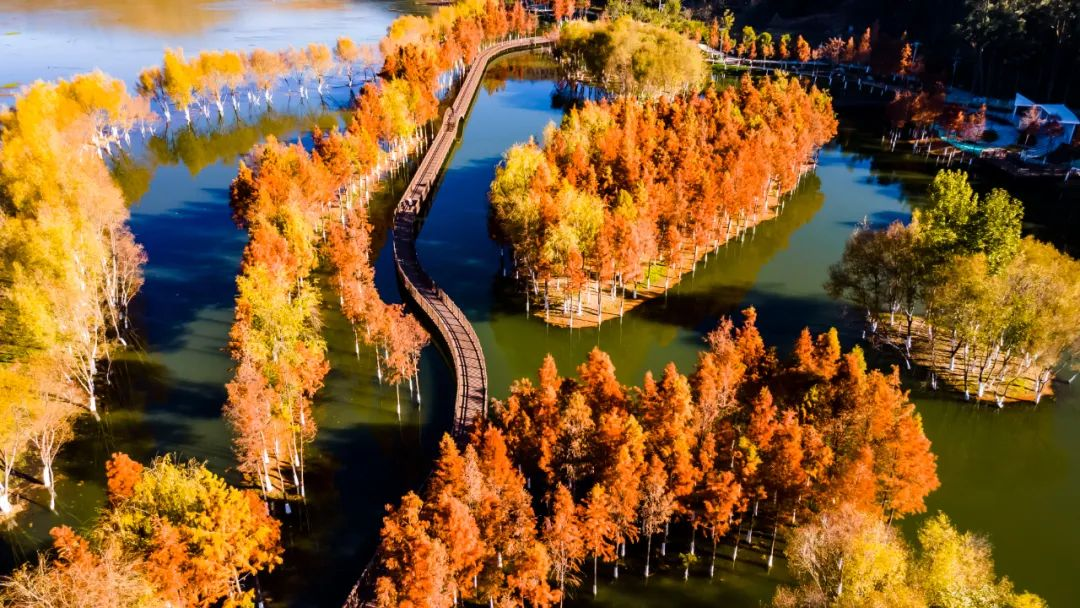一排排挺拔的水杉树披上鲜艳的冬装,从青翠到橙黄再到深红,像打翻的调色盘倒映在清澈的水面上。每年11月到次年2月,云南的这一抹“限定红”——水杉迎来最佳观赏期。这个冬季,不必远行,就在云南寻找那些如梦似幻的水杉林,解锁最独特热烈的冬日浪漫。