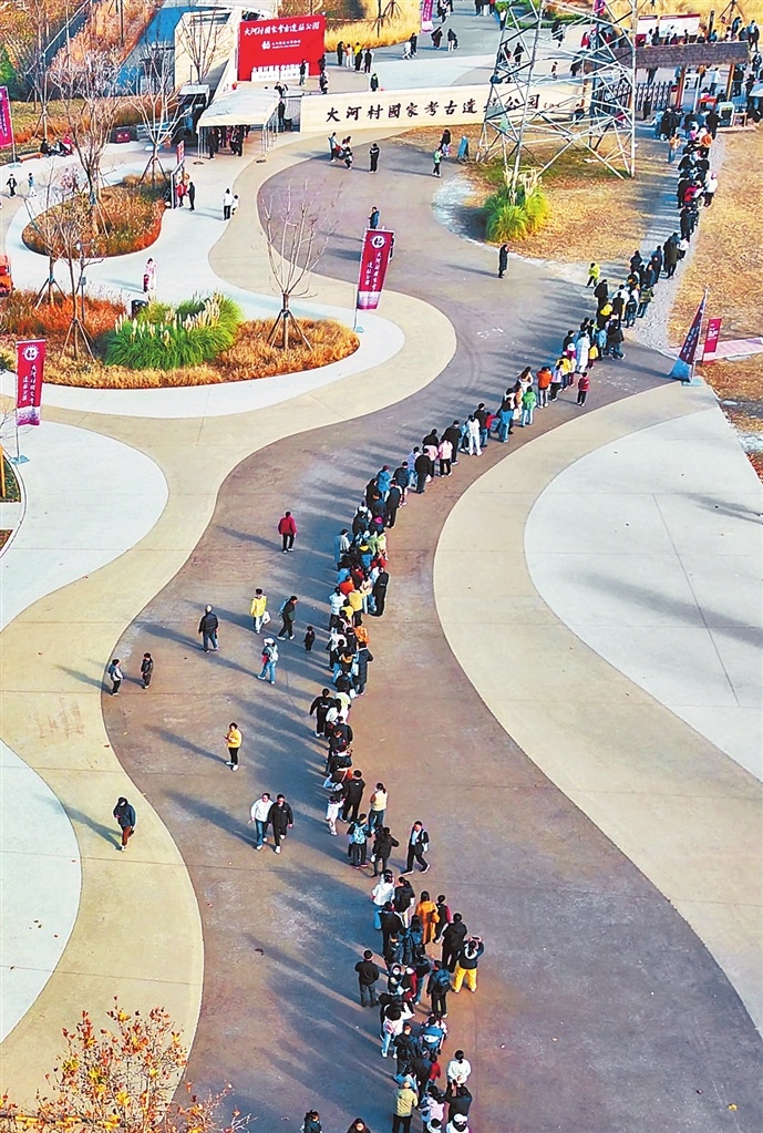 12月6日,大河村国家考古遗址公园正式向公众开放,大批游客排起长队。