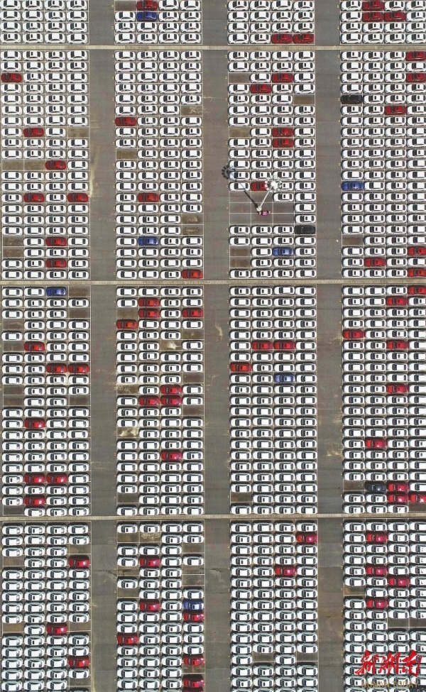 俯瞰北京汽车股份有限公司株洲分公司成品车停放区。(资料图片)湖南日报全媒体记者 李健 摄