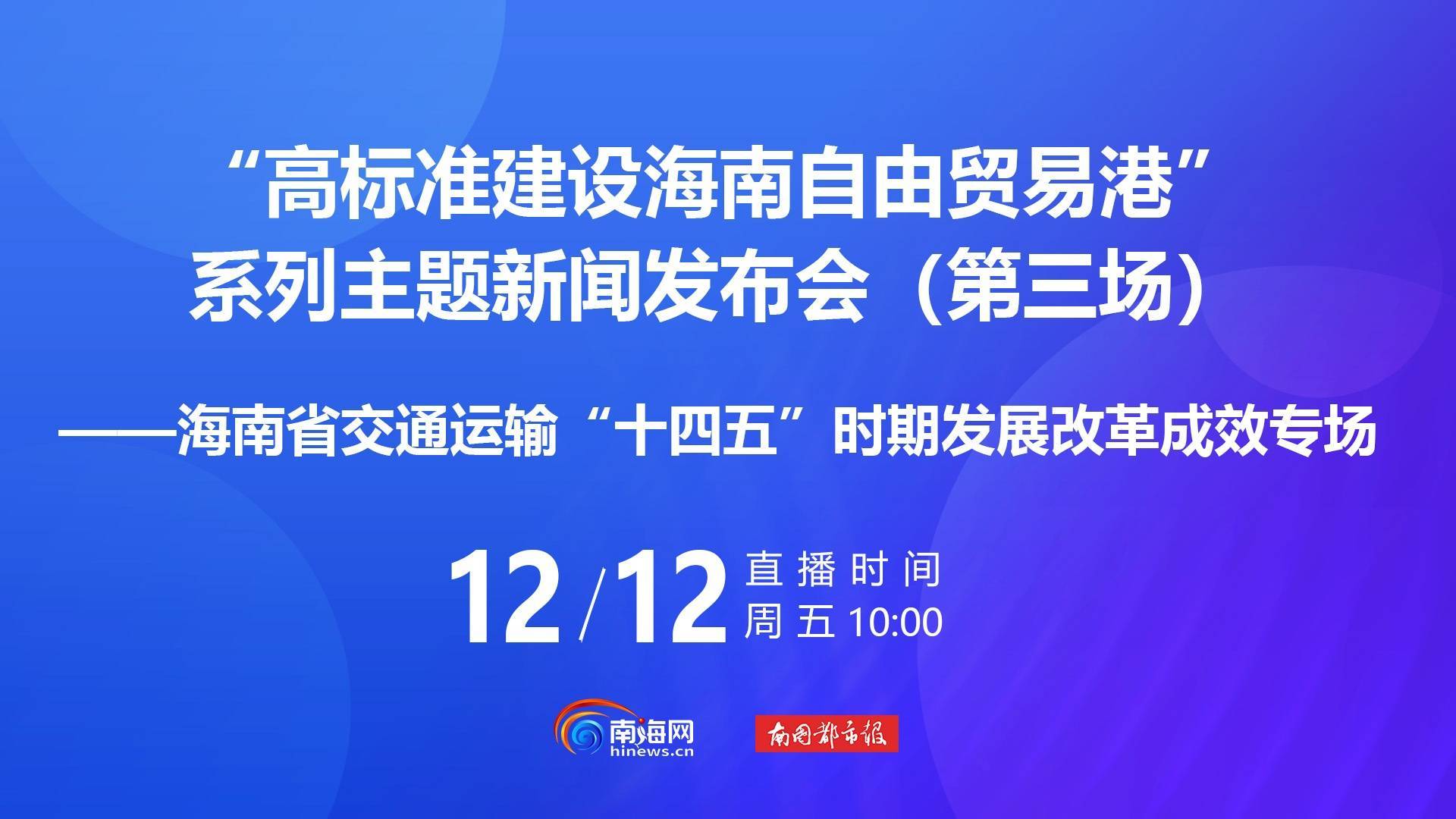 直播预告 | 12日上午10时,海南省交通运输“十四五”时期发展改革成效专场新闻发布会将举行