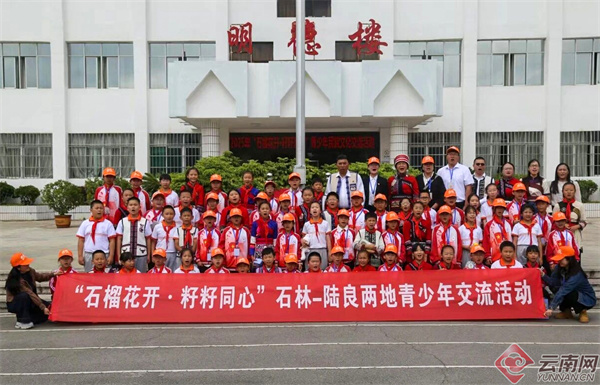 近日,一场以“石榴花开·籽籽同心”为主题的石林·陆良两县各族青少年文化交流活动在石林县民族小学举行。在“石榴绽彩”环节,民族小学学生表演了自创非遗课间舞《彝山彩虹》《中华民族一家亲》,以充满活力的舞姿展现民族文化的魅力;随后的“籽籽同心”结对环节中,两校互赠校旗,34对学生成功结对,互赠礼物、交流心声,建立起跨越县域的友谊桥梁;文化展演环节,两校学生分别带来民族器乐演奏、民族舞蹈表演、朗诵等丰富节目,展现出各民族文化的绚烂多彩;在“同心协力”体验活动中,学生们观摩彝族摔跤、学习大三弦弹奏、体验霸王鞭舞,切实增强文化认同。